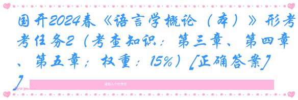 国开2024春《语言学概论(本)》形考任务2(考查知识:第三章、第四章、第五章;权重:15%)[正确答案]相关练习题: