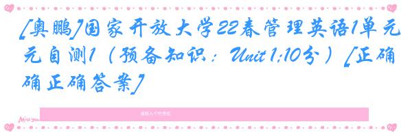 国家开放大学22春管理英语1单元自测1(预备知识:Unit 1;10分)[正确正确答案]奥鹏资讯分享: