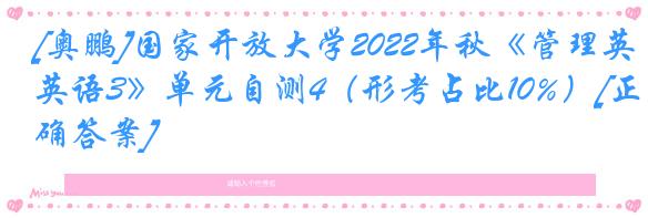 [奥鹏]国家开放大学2022年秋《管理英语3》单元自测4(形考占比10%)[正确答案]相关练习题: