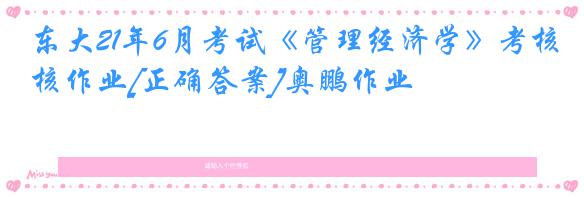 东大21年6月考试《管理经济学》考核作业[正确答案]奥鹏资讯分享:
