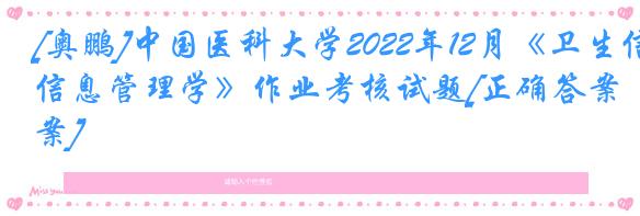 中国医科大学2022年12月《卫生信息管理学》作业考核试题